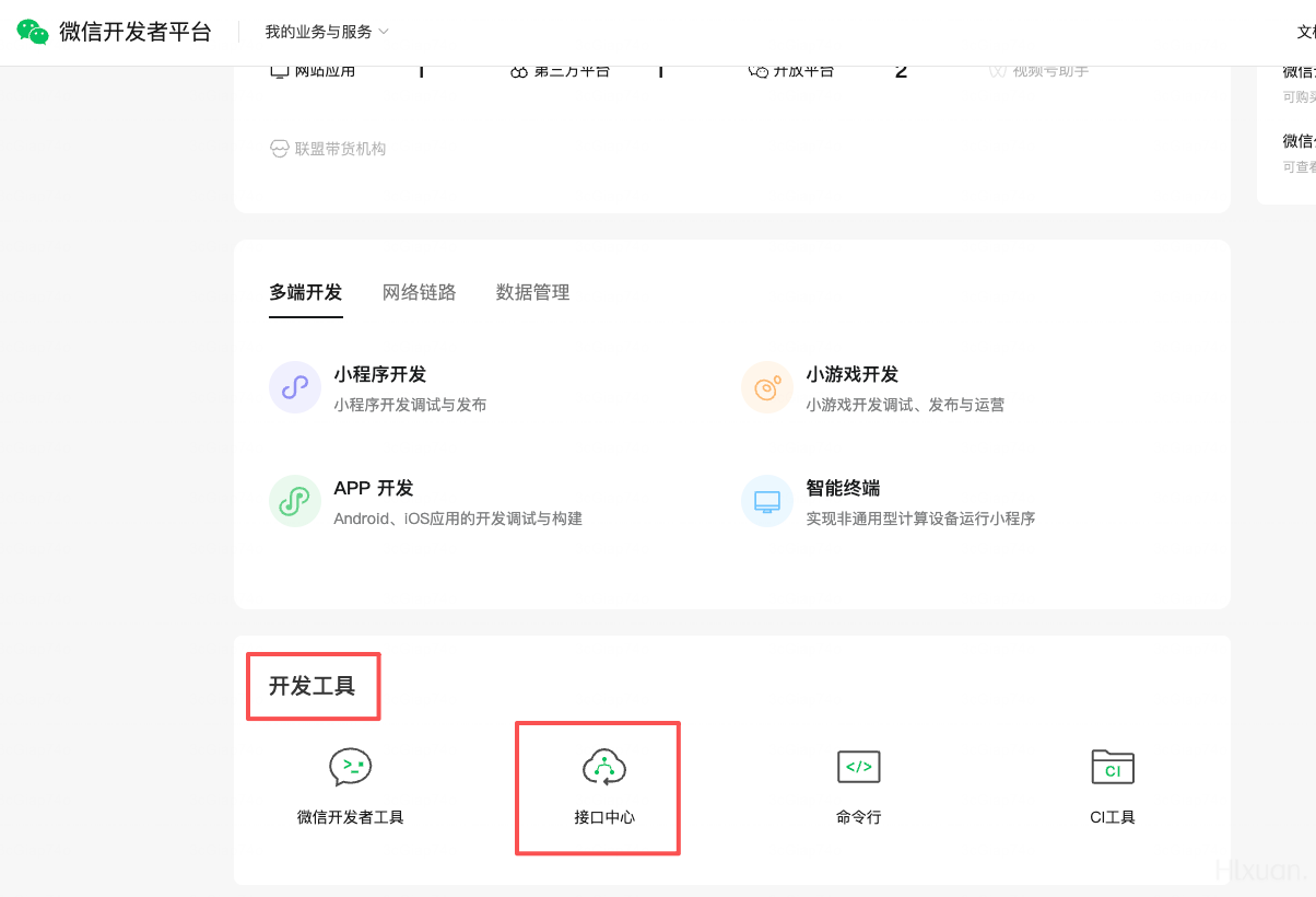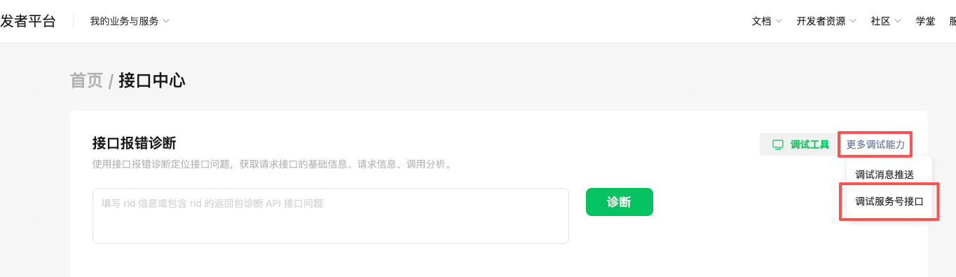 微信开发者平台 - 我的业务 - 开发者平台 - 首页 - 开发工具 - 接口中心 - 更多