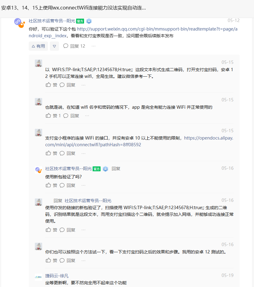 经过真机测试,官方的确在8.0.60进行了改进,但似乎依然遗漏了一些东西,目前通过安卓12进行测试的时候发现是可以实现了支付宝同等效果,但是在安卓15仍然存在临时wifi问题。
