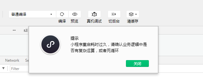 描述:一直提示重启耗时过期,但是没有告诉我具体是哪里出问题了,找了半天也没有找到原因,这个问题是上午更新了微信开发者工具之后就一直出现,请求帮忙!