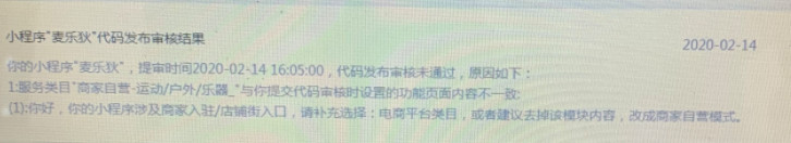 你好,经核实,你的小程序最新提审版本已不涉及商家入驻/店铺街入口,且最新提审版本审核已完成,请留意站内信!