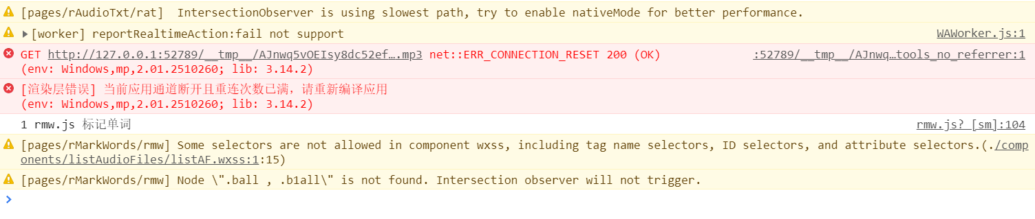 一、[pages/rMarkWords/rmw] Node \".ball , .b1all\" is not found. Intersection observer will not trigger.