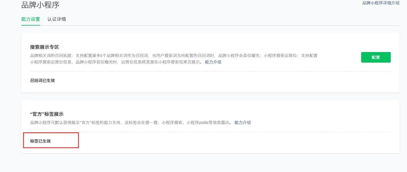 品牌小程序认证通过,官方标签字样消失了,请官方人员看下怎么回事?