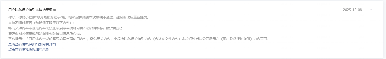 你好,请在上传补充隐私协议文件前检查是否可以正常到补充的隐私协议内容。(注:不要上传小程序代码或版本更新说明)