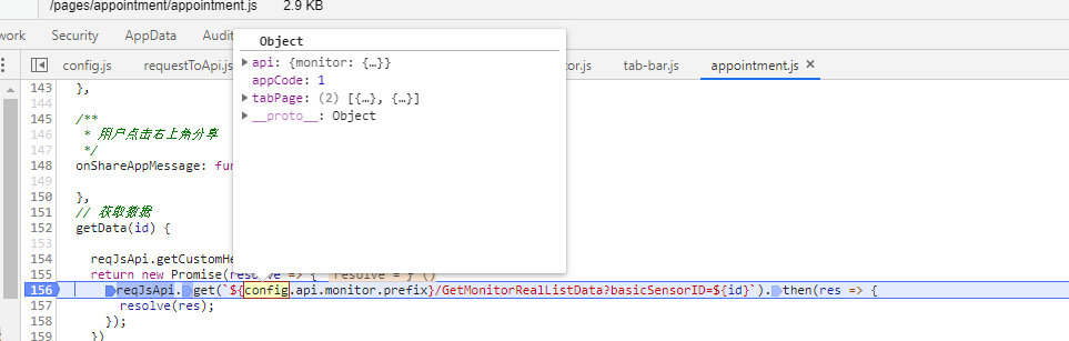 config才会有 config.api、config.tabPage、config.appCode