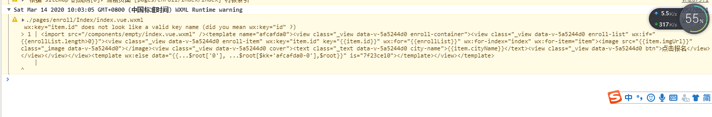 绑定key的时候不用再加item了,直接wx:key="id"就可以,取哪个值直接取,默认在当前item里取。看不懂英文吗