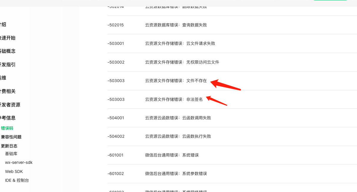 链接: https://developers.weixin.qq.com/miniprogram/dev/wxcloud/reference/errcode.html