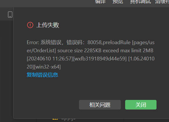上传代码 计算代码包体积,除了本地文件,还会包含引入的插件信息,如果还对js文件进行代码加固,加固的文件也会算到代码包体积里边。