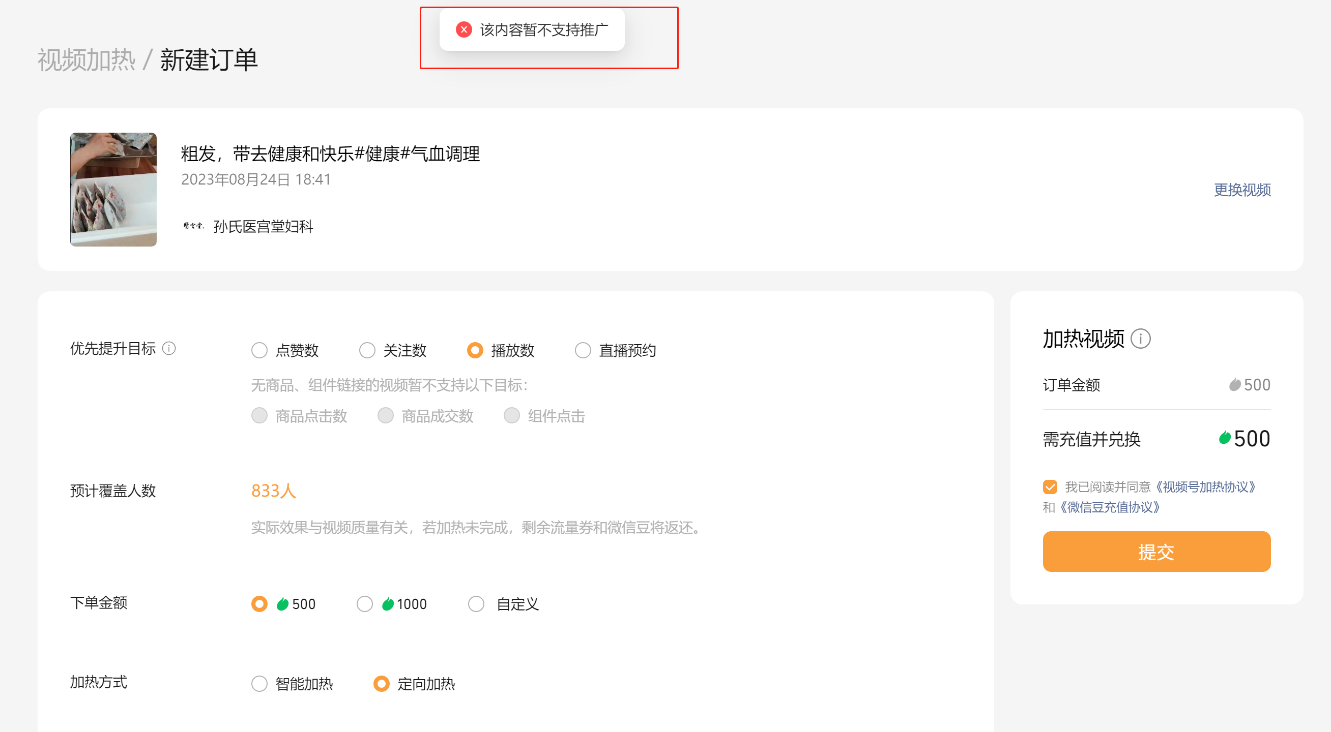 已经经过审核加热推广完成的视频内容,为什么又不支持推广了?请给个说法!