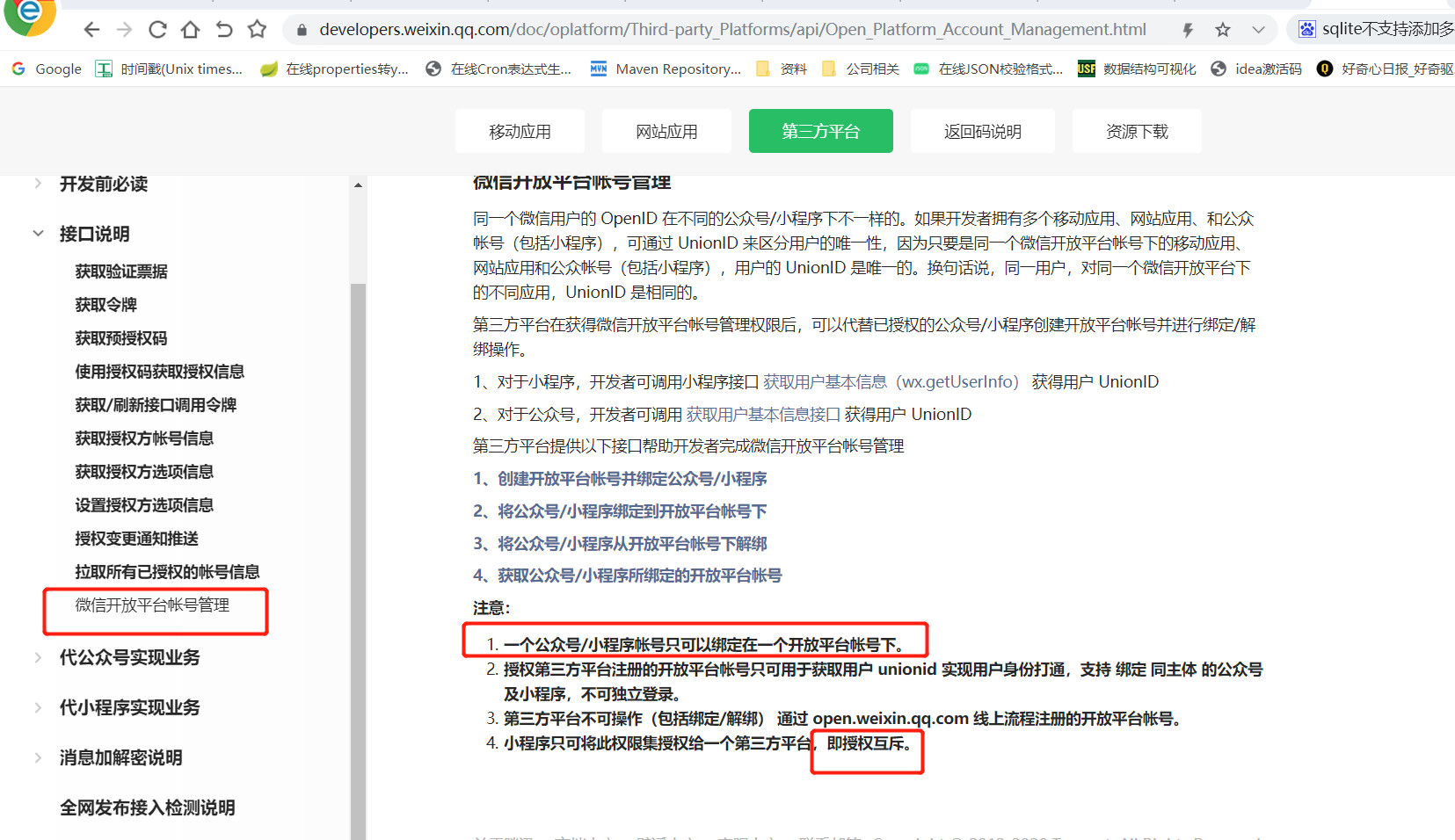 官网文档如下描述,小程序也是一样,如果有授权给其他第三方,也会有这个问题,都是只能授权给一个第三方平台