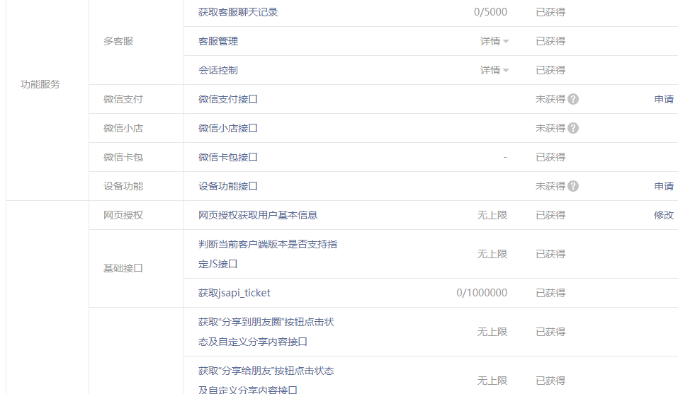 公众号api权限也有(就只有3个是未获得,其他都是已以获得)