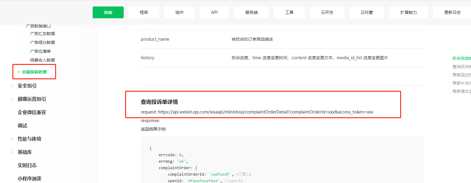 request: https://api.weixin.qq.com/wxaapi/minishop/complaintOrderDetail?complaintOrderId=xxx&access_token=xxx