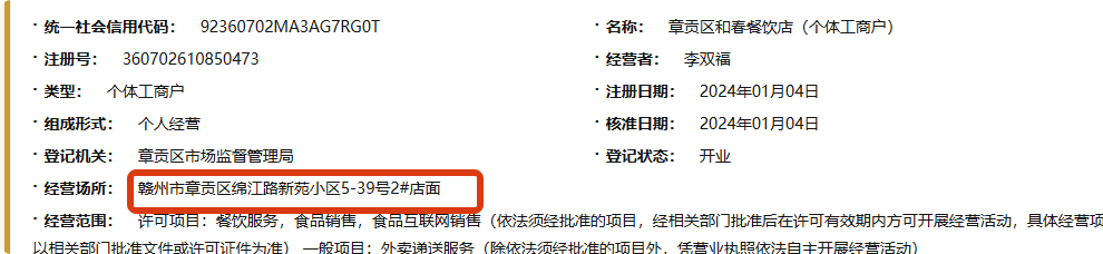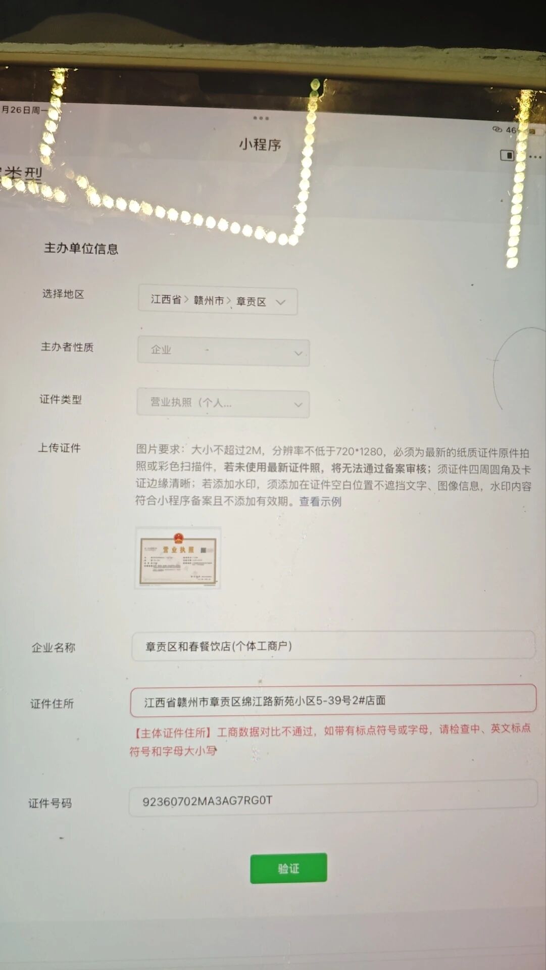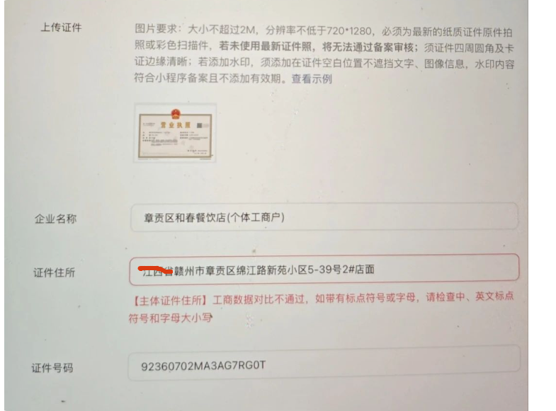 小程序备案地址跟营业地址一样,就是无法提交,显示地址显示与工商数据比对不一致