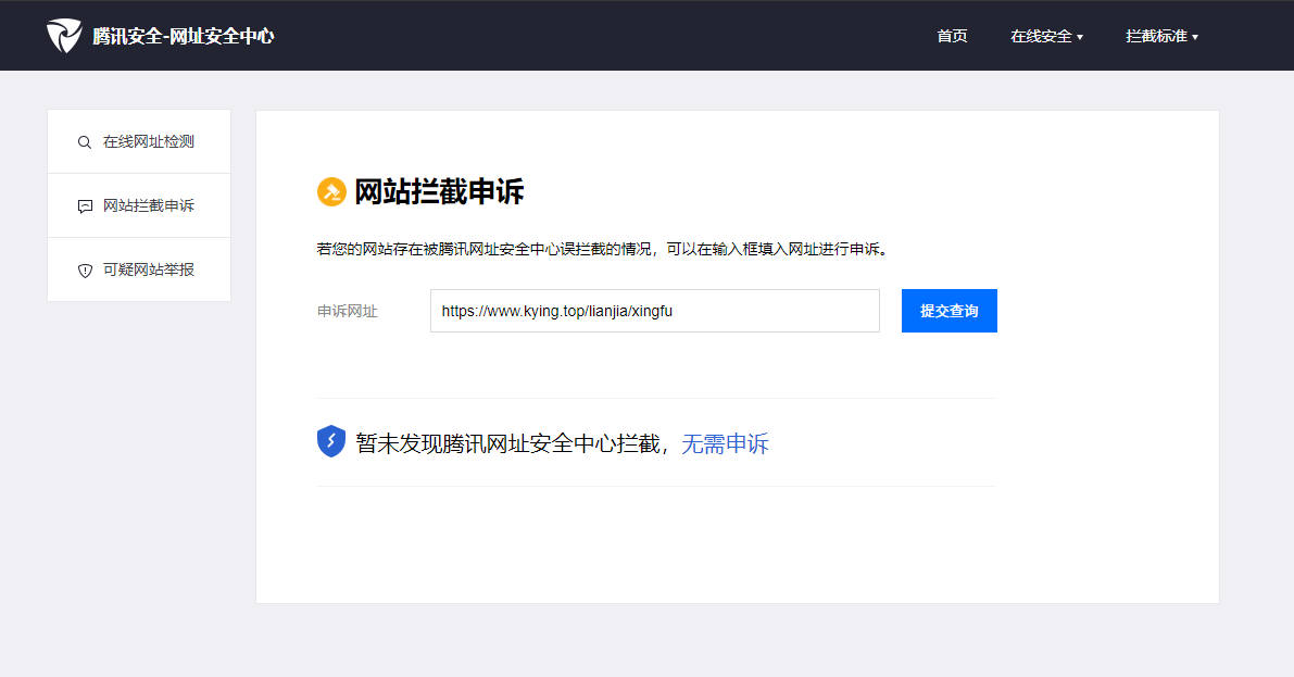 新注册备案的域名,刚准备投入使用发现被限制访问。经腾讯安全-网址安全中心检测无问题。链接页面无任何违规内容,现在通过微信访问,都提示【无法确认该网页的安全性,请谨慎访问】。点击【申请恢复】进行申诉,一直没有反馈,也一直不能正常访问。请官方帮忙看一下,谢谢!