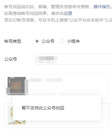 微信登录公众号提示账号被冻结,找回公众号号时提示暂不支持找回。怎样才能释放已经绑定的公众号和相关资源?