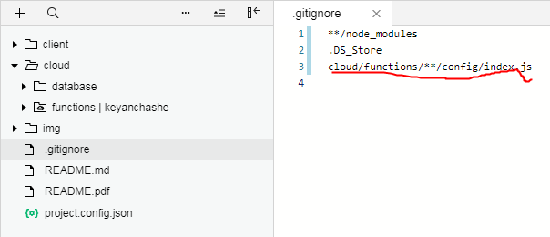 为什么“cloud/functions/**/config/index.js”被ignore?
