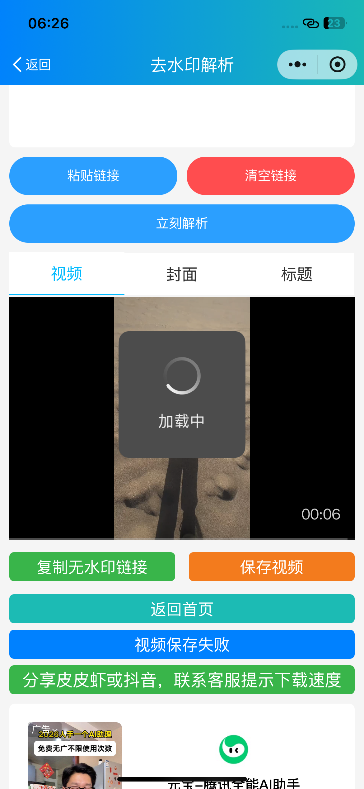 微信去水印小程序不能使用是什么原因?要求是看一个广告解锁免费用一天,以前可以保存,现在看完广告后保存一直转圈,加载不能保存是什么意思,怎么决绝