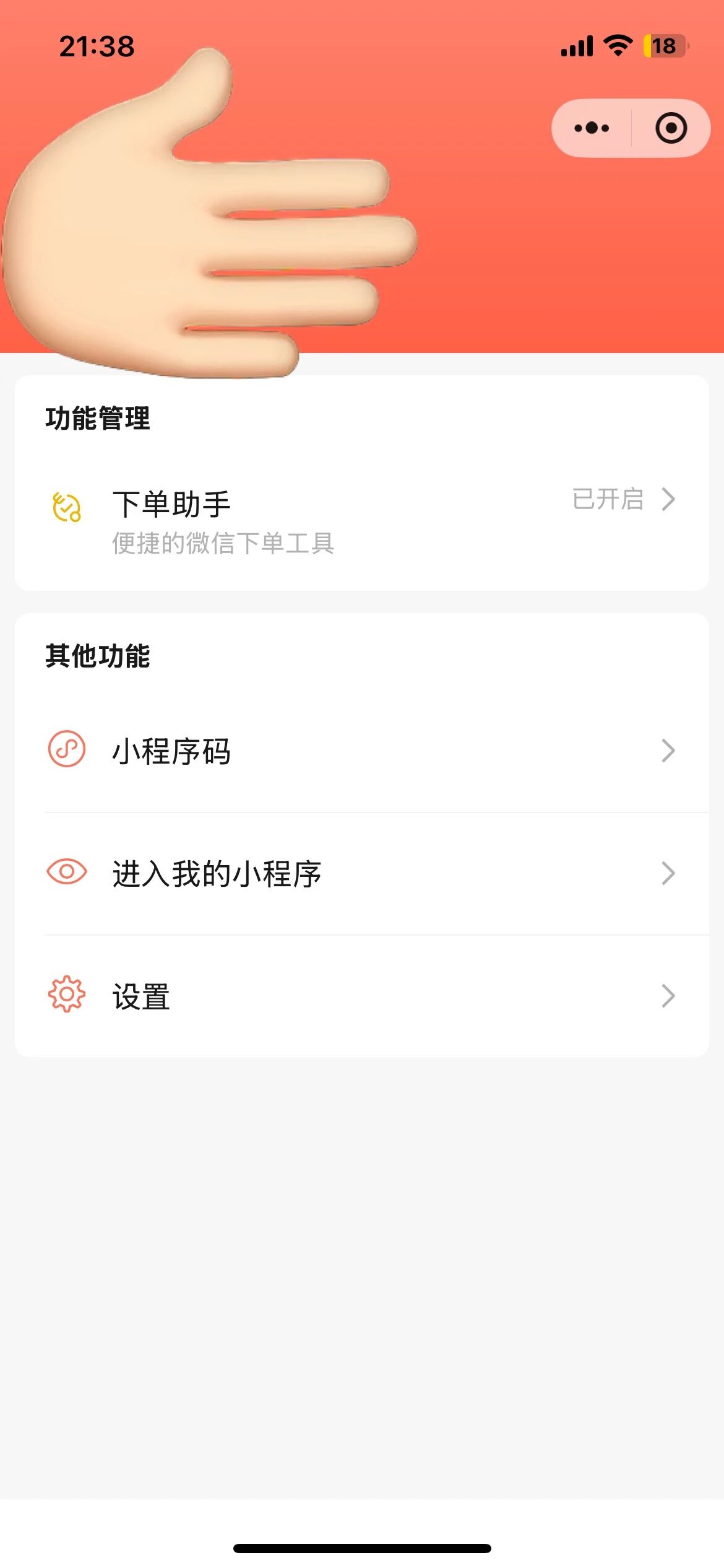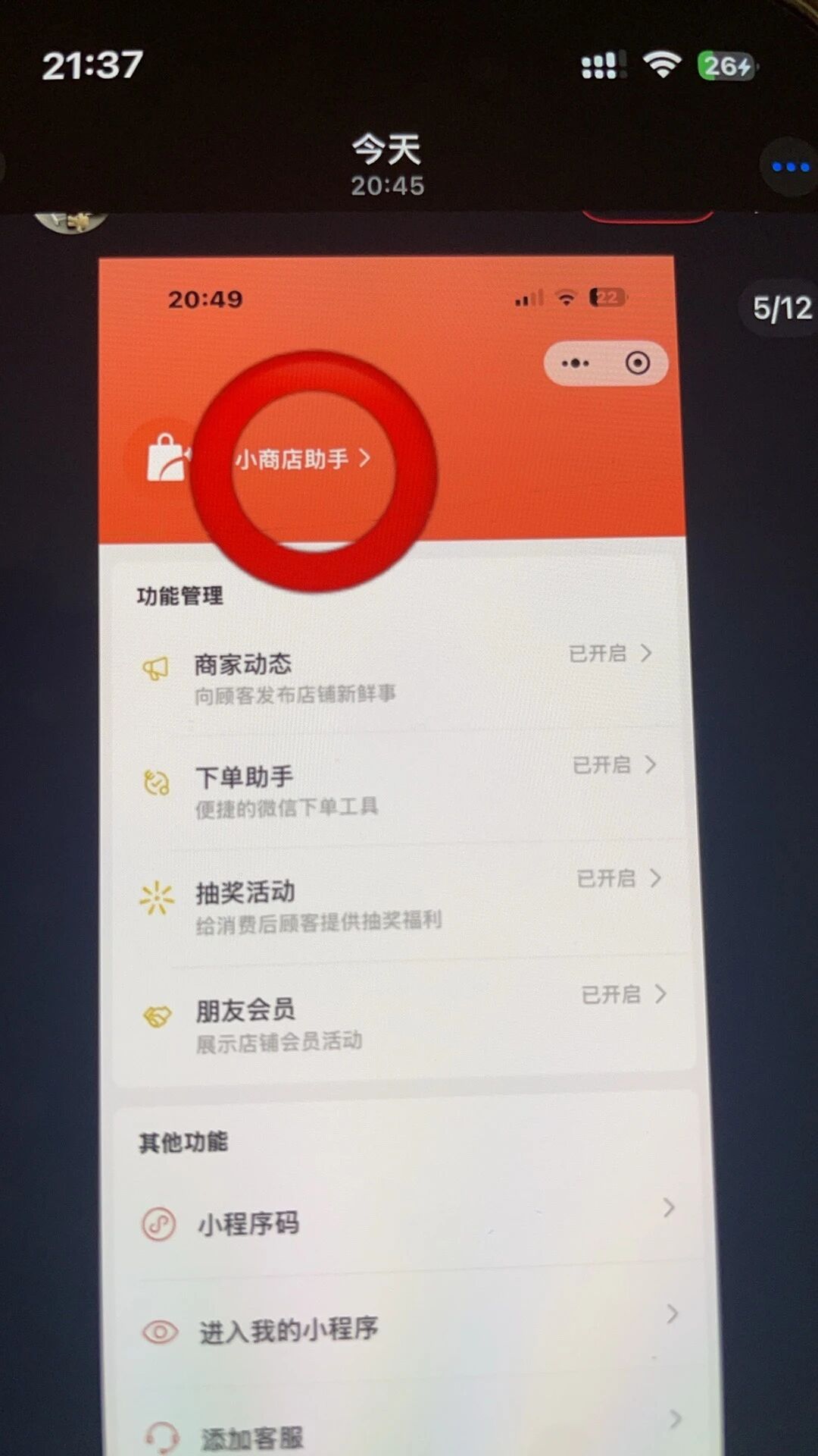 别人的商家小助手打开功能管理里面有商家动态,抽奖活动,下单助手,抽奖活动,朋友会员,而我只有一个下单下单助手