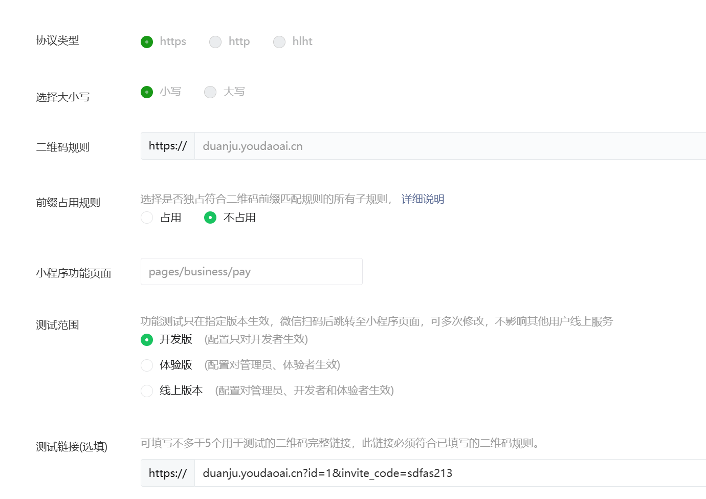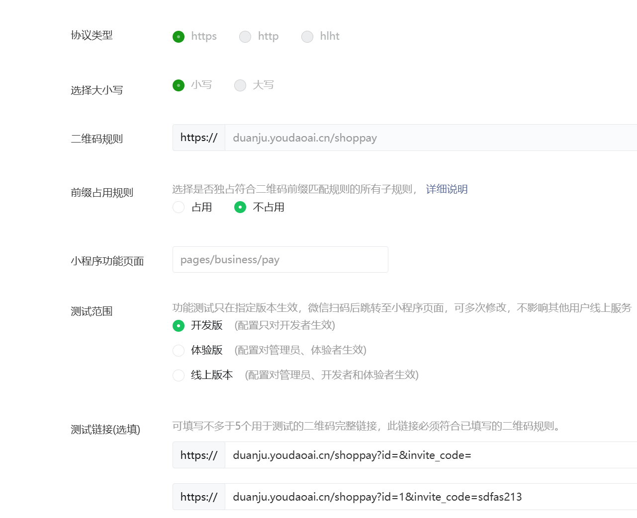另外确定个二维码规则设置,包括二维码的解析地址,要求能打开吗?还是说随便定义一个空的地址也行? 早上的时候我能打开时,当时我设置的 duanju.youdaoai.cn/shoppay 此地址是不存在的 也能正常打开。