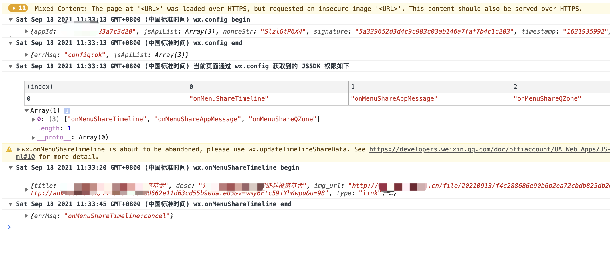 'onMenuShareTimeline', 'onMenuShareAppMess',突然没用了,直接按钮没有了,开发者工具里是好的