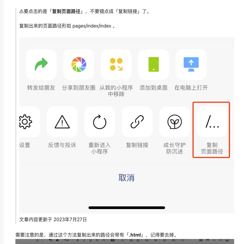已经按照操作在获取更多路径里开启入口并复制链接,但是设置好之后跳转不到指定的页面,提示我该页面不存在