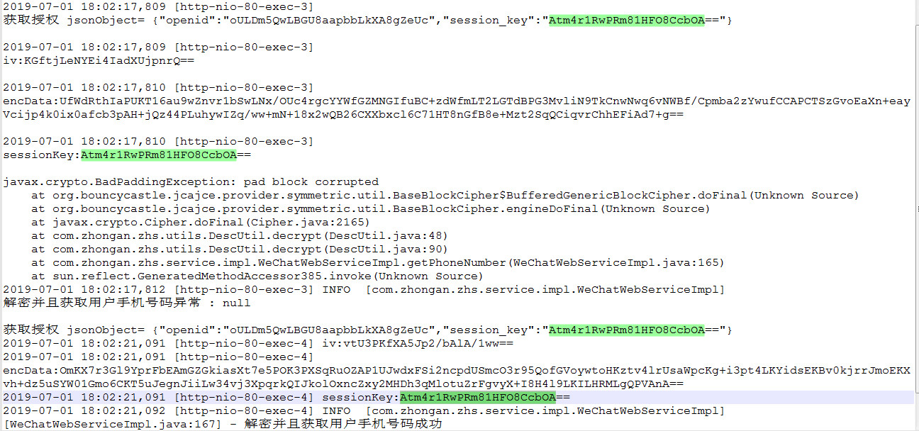 sessionkey没有过期,客户端工具基本不会出现失败情况,真机失败几率在50%,解密手机号方式同时使用三种测试,1通过js直接解密,失败几率60%