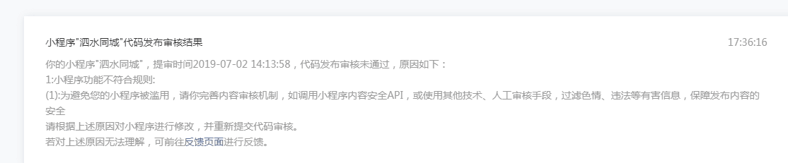 小程序掌上信息有发布审核,这个需要后台管理员审核,前端显示没有任何违规内容,就提示这个不给通过,麻烦贵公司审核人员给予明确指引谢谢