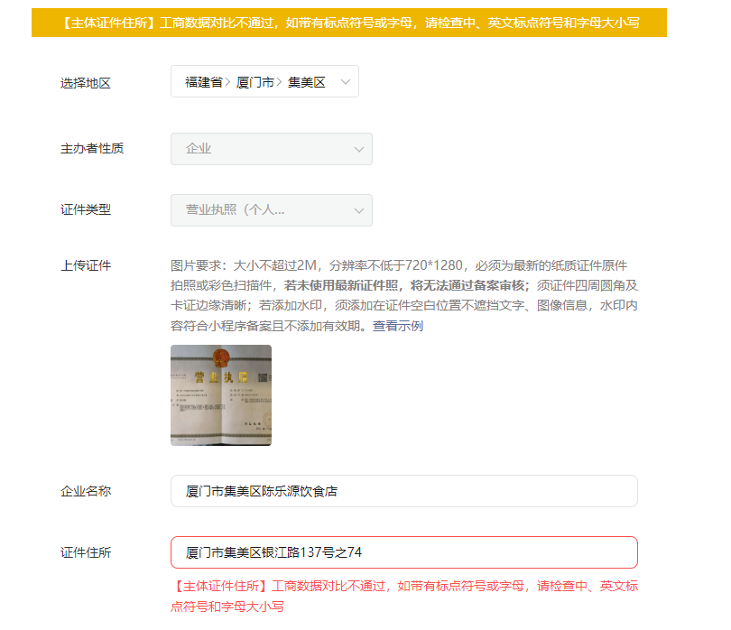 你的经营地址是14号更新的吗,应该是后台还没拉取到更新的数据