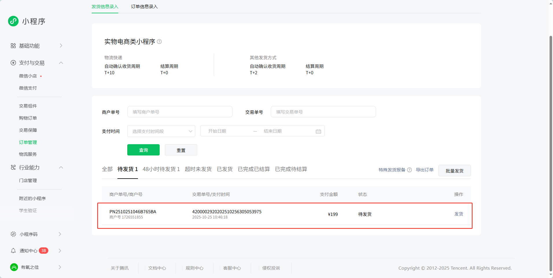 客户退款,退款已经完成,微信支付商户也有记录,但是在小程序后--订单管理 依旧需要我去填入发货信息,并没有同步为退款,想删除或修改此订单信息也没找到对应入口。
