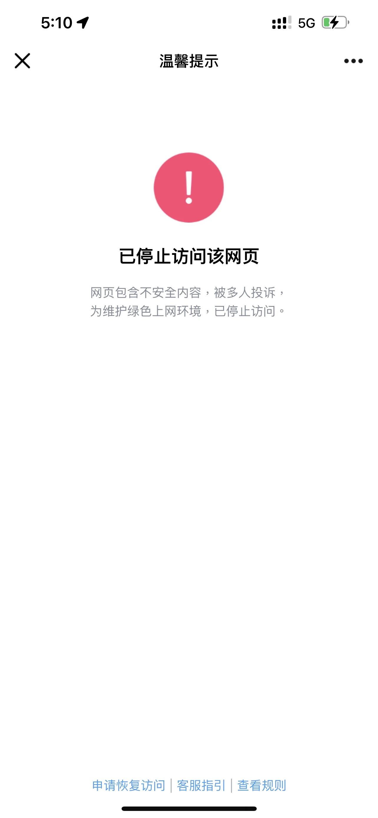 你好,经核实该域名被手机管家拦截,此处仅处理被微信暂停提供微信内直接访问的服务的外部链接的申诉问题,此服务不在受理范围,建议登录手机管家官网【http://gj.qq.com/online_server/complain_url.html】自行处理,请知悉。
