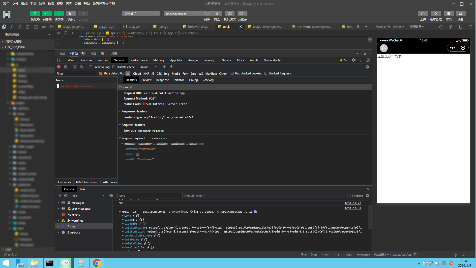4、此时发现,若用户未点击<functional-page-navigator>组件确认授权,则无法访问小杯子插件的CloudBase服务,