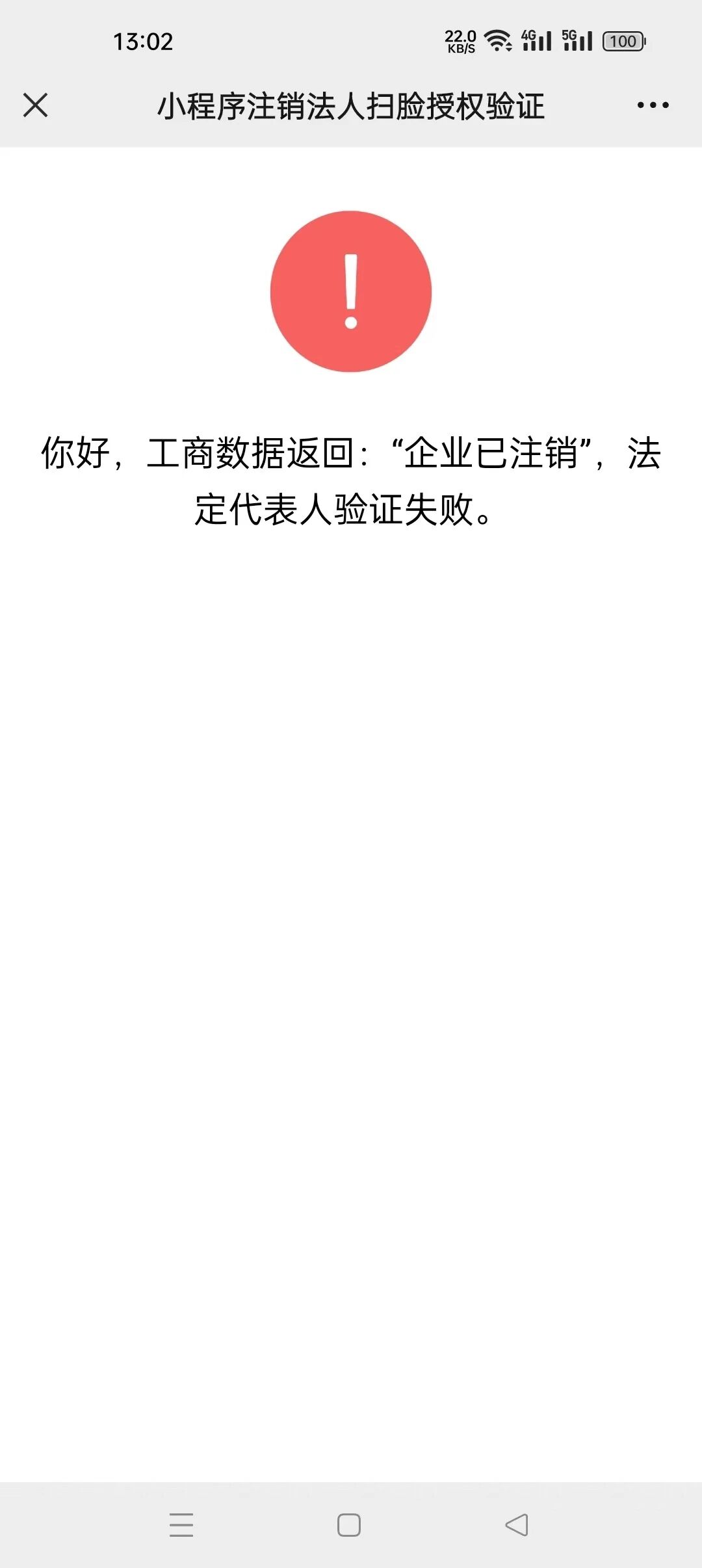 以前的营业执照早停用了,N年前的小程序一直显示“”注销中“”,就是无法彻底注销。到了人脸识别那一步就不能继续了。怎样能彻底注销?