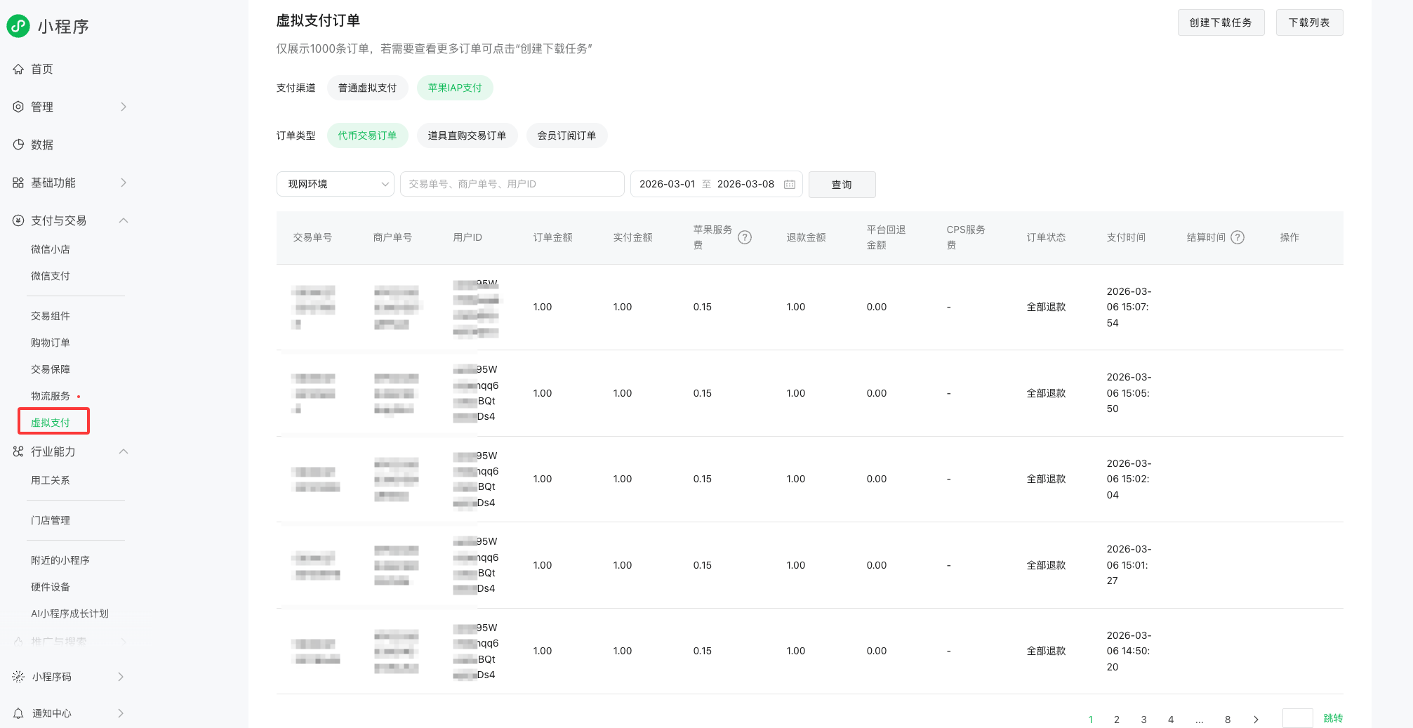 客户通过app store付款后,在自研的小程序管理后台如何查看付款成功的订单?