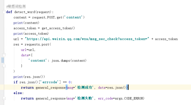 HttpPost request = new HttpPost("https://api.weixin.qq.com/wxa/msg_sec_check?access_token=" + jo.getString("access_token"));