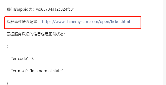 授权事件接收配置: https://www.shinerayscrm.com/open/ticket.html