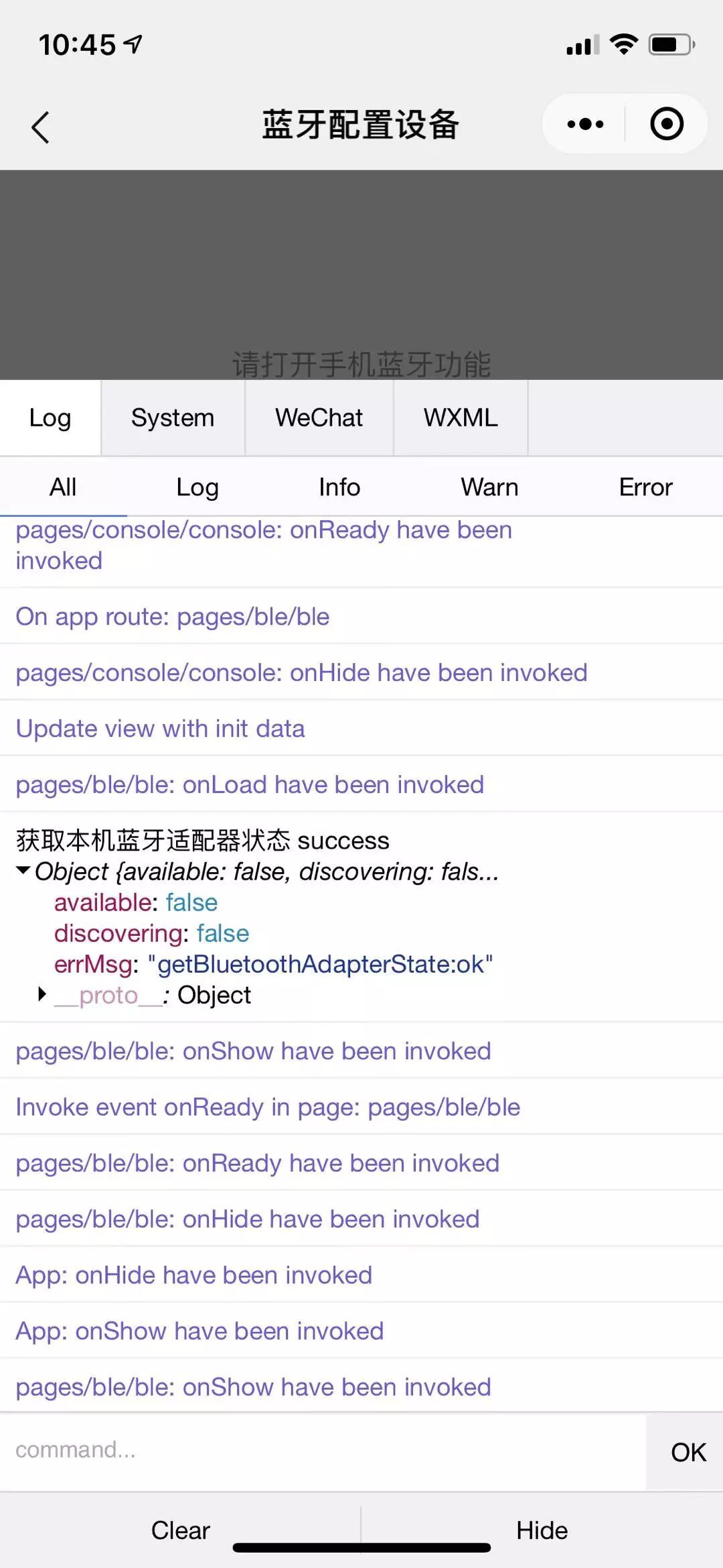 接口进入success回调,而且手机蓝牙也是开启的,返回值available:false。