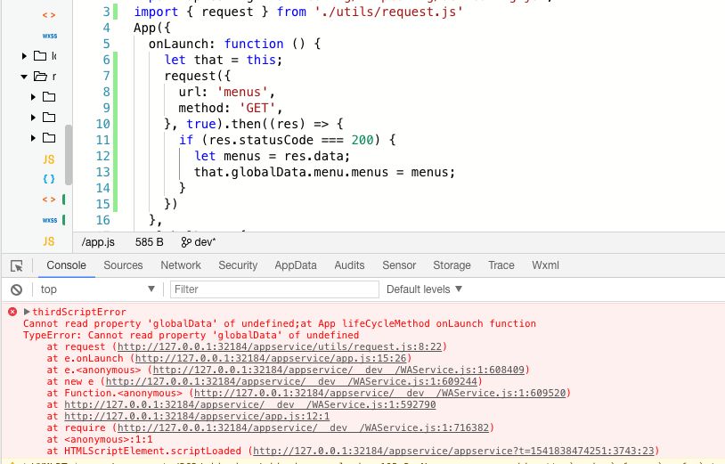 把你的工具类request发出来啊, app.js中import的文件, 不要在文件头使用getApp()