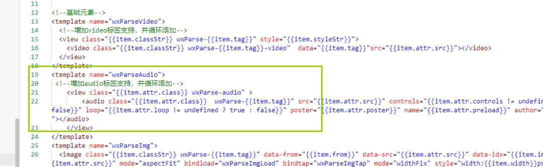 你好请问下如何 把 wxparse.js 里的数据绑定到wxparse.wxml 里呢 菜鸟一个 (捂脸)