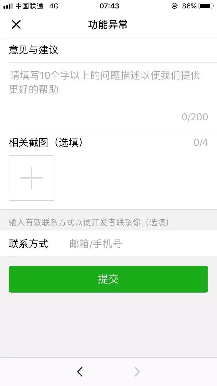 产品经理设计了一个功能,希望能够通过小程序收集用户的反馈和建议。内容包括文字描述以及用户手机相册中的照片。我们想通过最简单的方式实现,比如说发送邮件或者作为消息发送到微信群中去。不知道有没有实现过类似功能的朋友能提供一些参考?万分感谢!