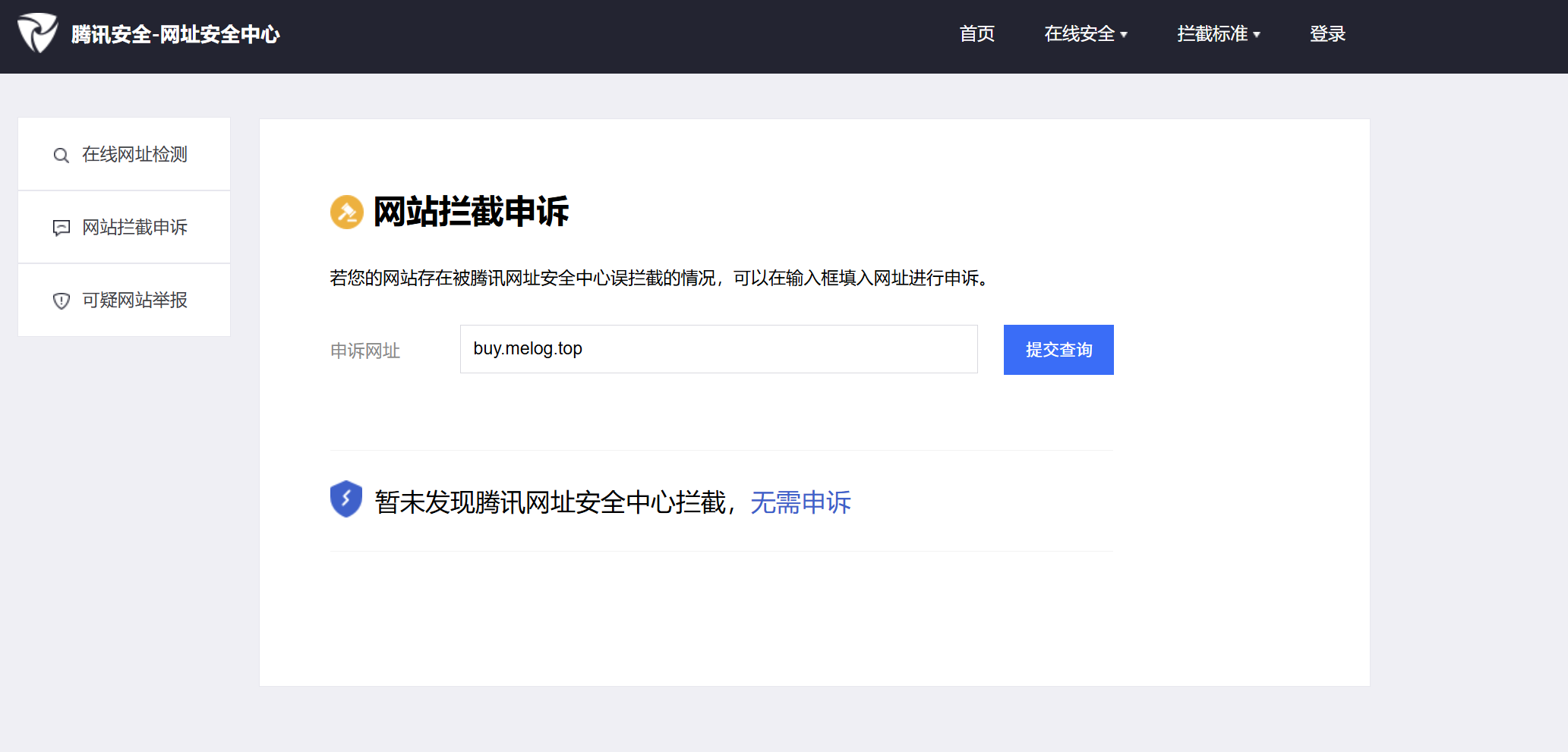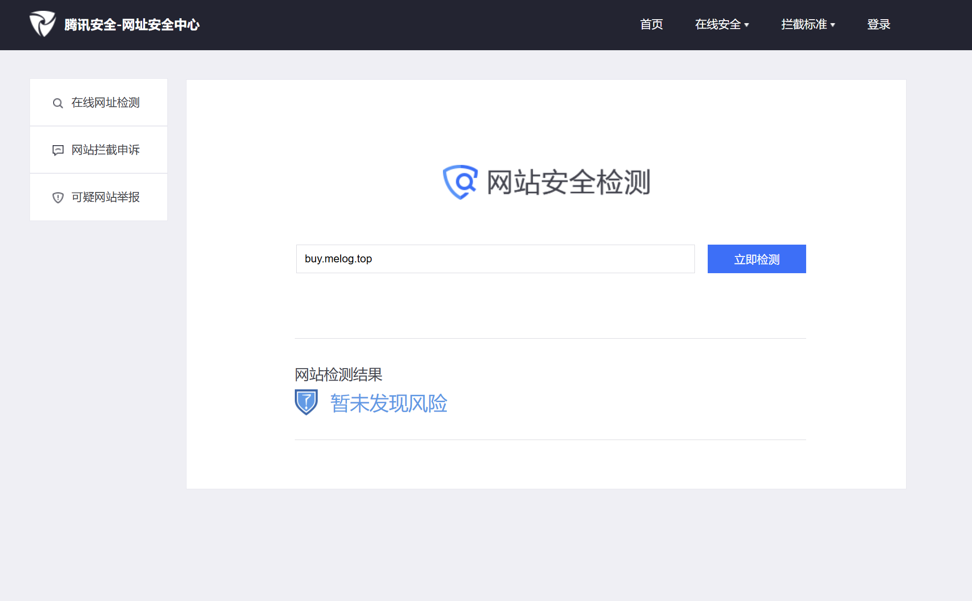 2.腾讯网址中心检测网址提示未发现风险无需申诉,证明网站在内容和安全方面符合腾讯相关规范。