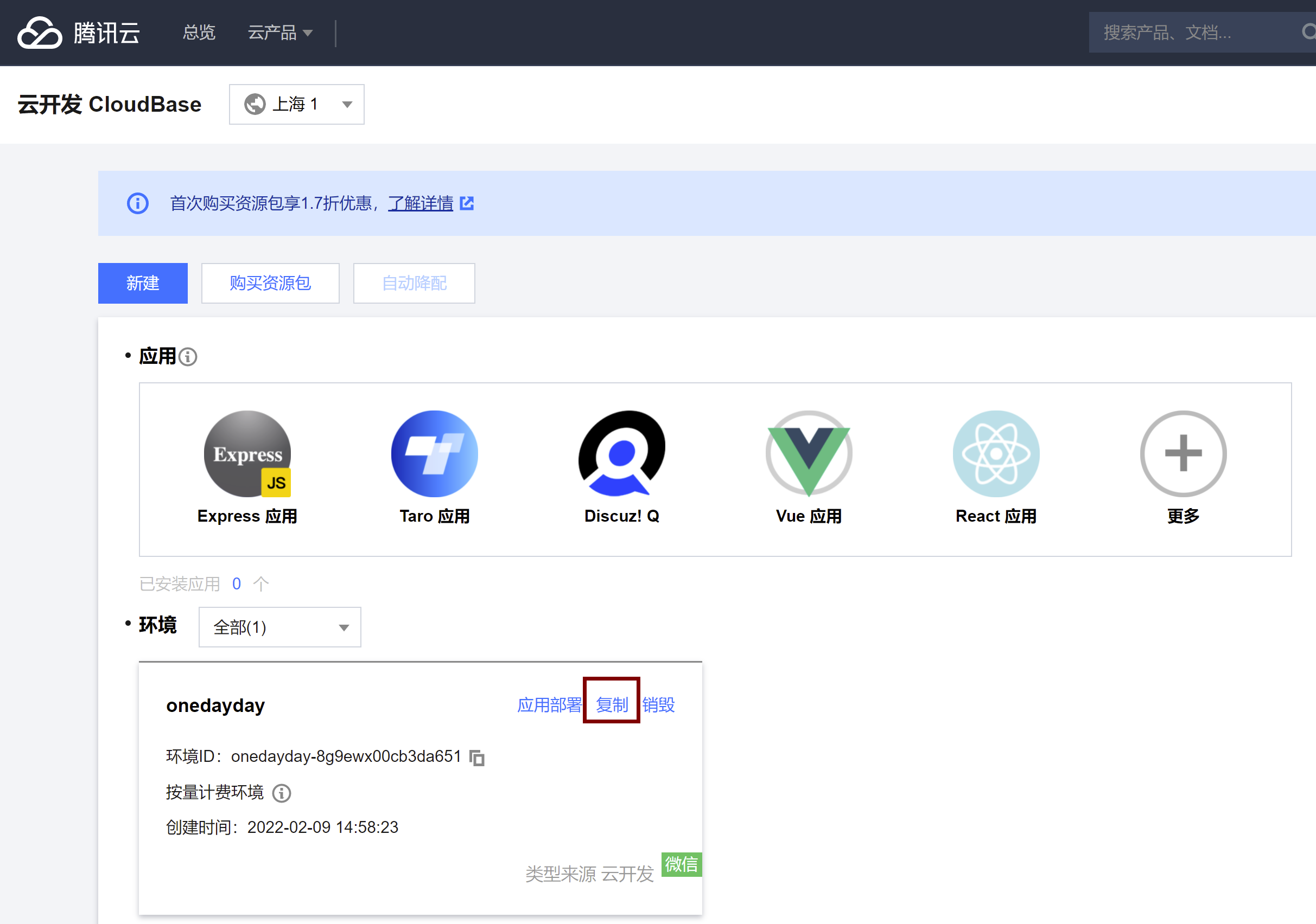 微信云开发预计下周将支持【复制环境】功能,可以将已有环境的集合、云函数等规则复制到一个新的环境中