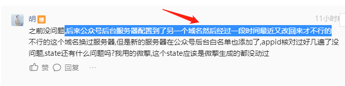 不行的这个域名换过服务器,但是新的服务器在公众号后台白名单也添加了,appid核对过好几遍了没问题,state还有什么问题吗?我用的微擎,这个state应该是微擎生成的都没动过