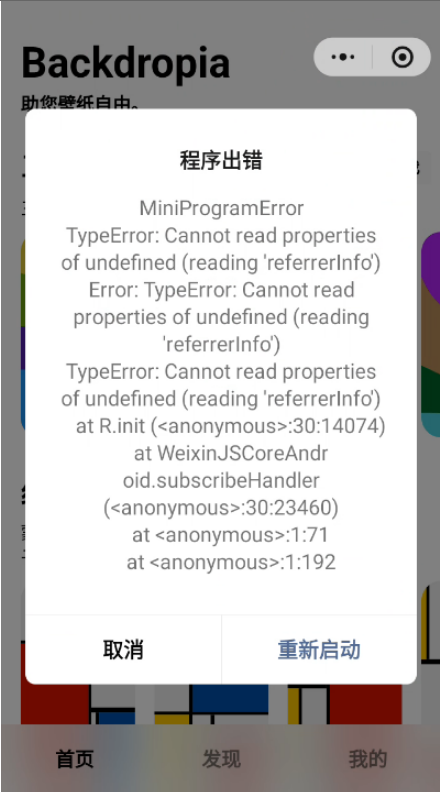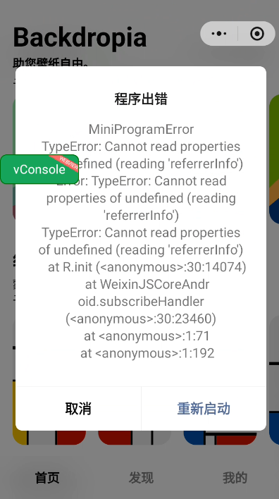 Cannot read referrerInfo of undefined? - 微信开放社区 https://developers.weixin.qq.com/community/develop/doc/000424cf7f8d10b59e549ee016e400