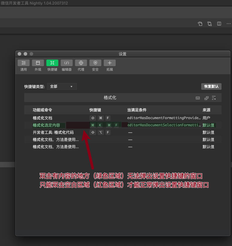 建议双击 “快捷键”列区域的内容,或者点击右键,选择修改
