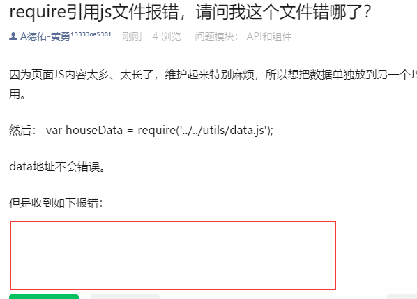 var houseData = require('../../utils.data.js');Array = houseData.getHouse();我在data.js里面定义数据var get_house = { 数据。。。 }就没问题,但是如果定义成数组[ 数据...] 就会报错。这是怎么回事呢