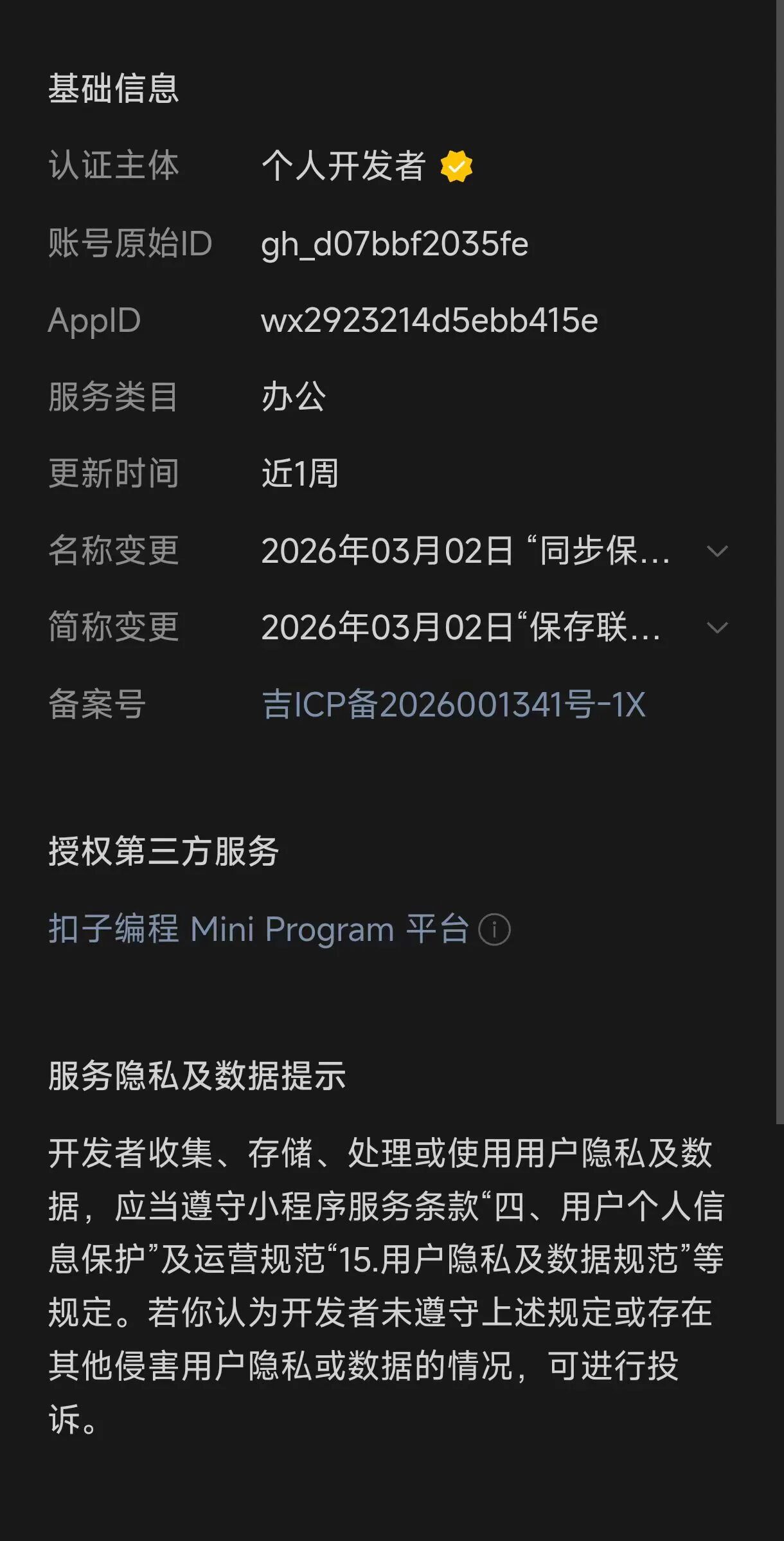 中午刚通过认证,下午直接注销ID号,也不说明原因?我的小程序一不收钱,二不收集信息,三不打广告,只是一个方便工具,所有注册信息都是真实且通过三方公司审核,为什么直接注销我的ID和小程序??????