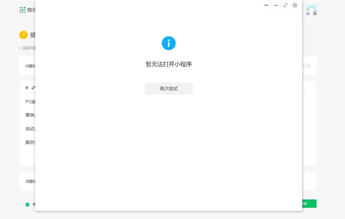 PC端小程序加载半天后提示“暂无法打开小程序”。