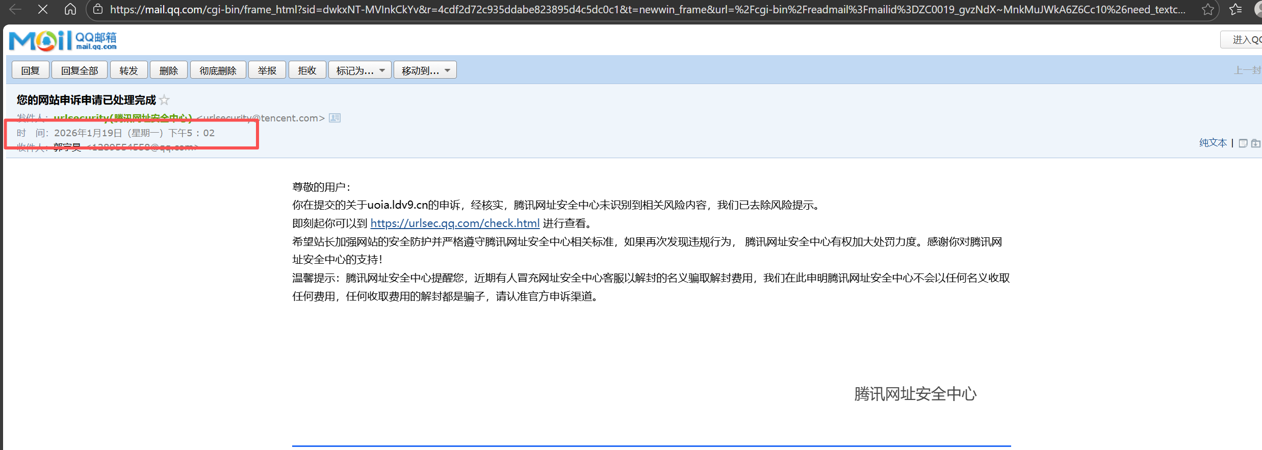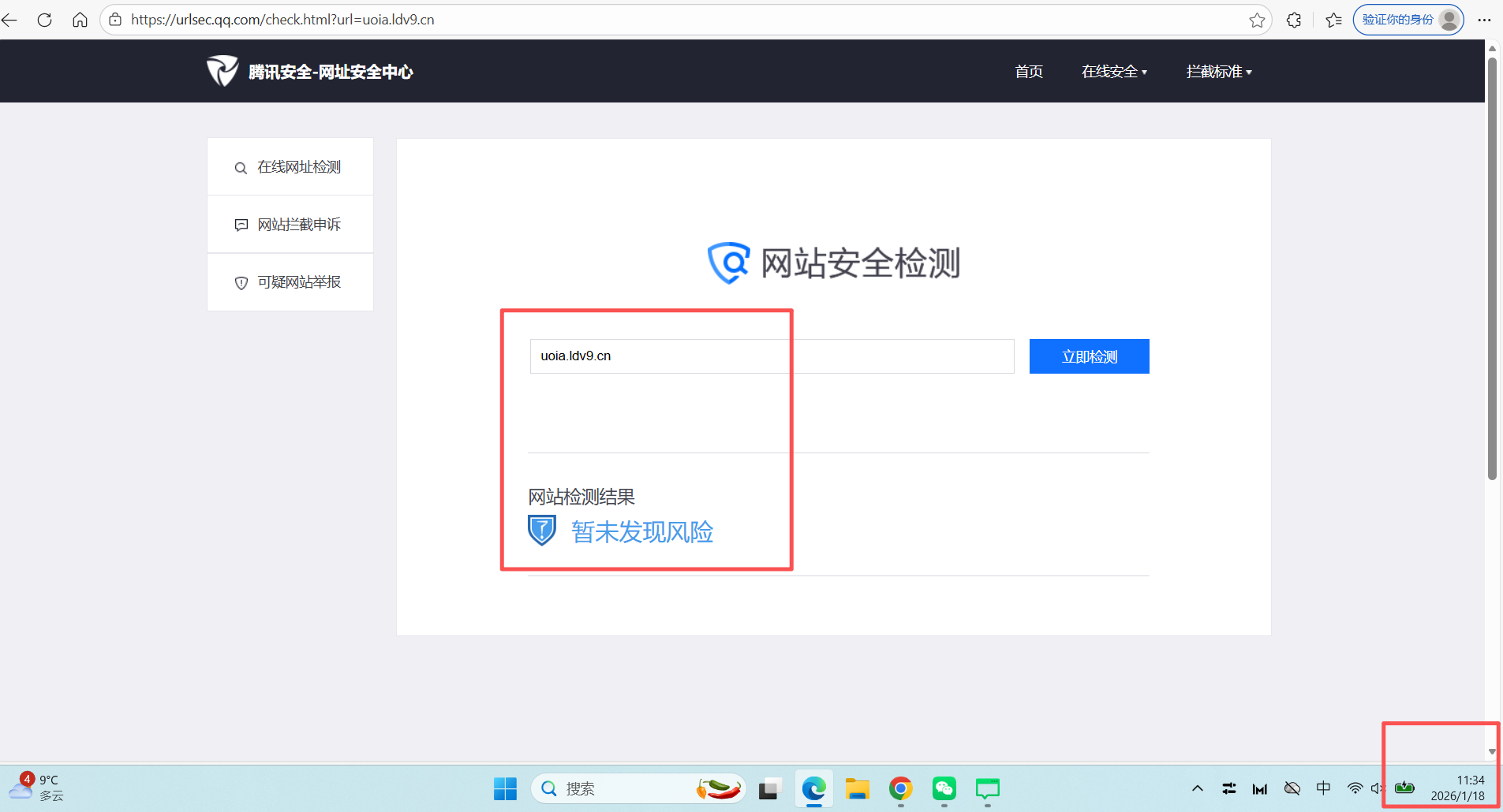 服务号域名,用于客户授权的,放在服务号业务域名中,腾讯安全-网址安全中心检查无风险的域名,但是在微信端是风控打不开的状态?能否帮忙解封一下?域名已经备案过,下面是我展示的一些截图