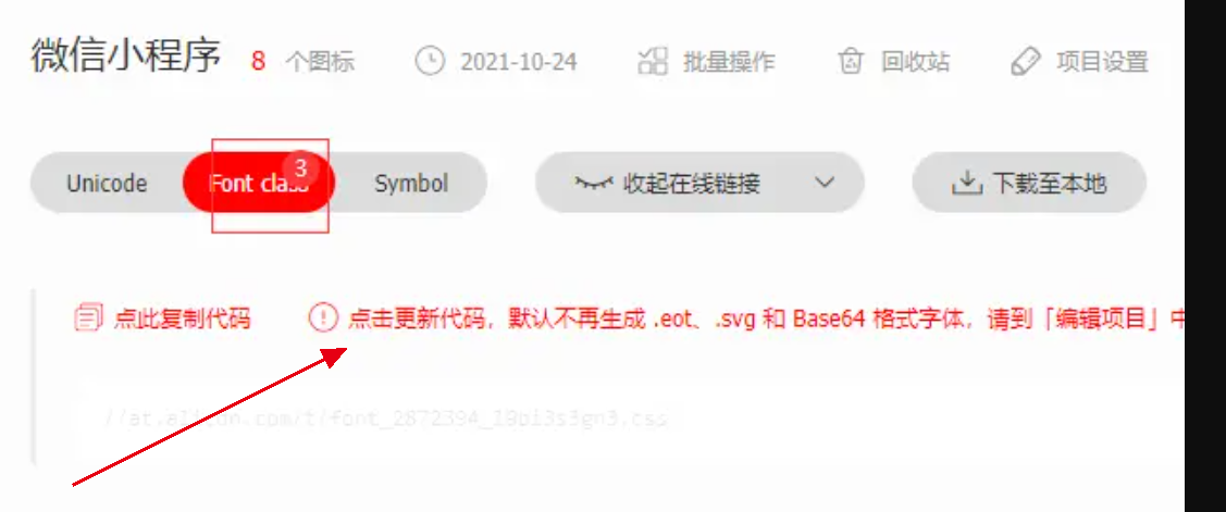 目前 iconfont 阿里图标更新后,发现没有在线生成代码功能后,小程序如何引用阿里图标?