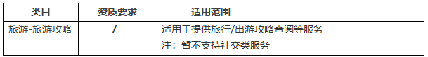 这是一份动态更新的文档,辅助开发者提前了解【旅游-旅游攻略】相关的业务形态所需申请的类目,避免开发者因类目不符审核失败,开发者如有其他疑问,可以通过目前开放的咨询渠道反馈: