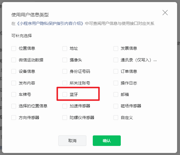 蓝牙相关的隐私协议加上了吗?发版的时候勾选“采集用户隐私”了吗?